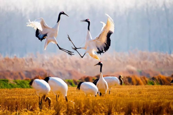 盐城国家级珍禽自然保护区是全球最大最重要的丹顶鹤越冬地,每年有400—600只丹顶鹤在这里越冬。