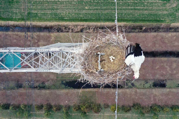 3月2日,建湖县九龙口国家湿地公园,护线爱鸟小队的荀顺和同事利用无人机进行巡查,详细记录60多米高铁塔上,一对东方白鹳的孵化情况。如今,随着当地生态环境的日益改善,有些候鸟甚至开始“乐不思蜀”,逐渐从冬候鸟演变成“留鸟”,而这一待就是8年。据了解,8年前,从一对“白鹳夫妇”来此生下3只鹳宝宝“常住”开始,每年都会有越来越多的东方白鹳选择在铁塔上筑巢安家、繁衍生息。