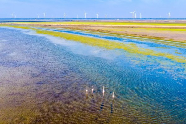 为了帮助来此觅食的候鸟就近找一块躲避涨潮的歇脚栖息地,盐城在离候鸟觅食区最近的围垦养殖区专门辟出720亩的区域,通过以生态自然修复为主、辅以适度人工干预的方式,综合考虑水位、滩位、植物和人工调节的频率等,打造了国内第一块固定高潮位候鸟栖息地,成为“全球保护的最佳案例”。