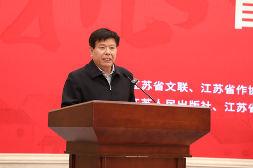 徐宁在讲话中强调,早在 2017 年,党的十九大报告就提出要实施乡村振兴战略。习近平总书记也多次就全面推进乡村振兴发表重要论述,强调要加快推进农业农村现代化,让老乡们生活越来越红火。贯彻落实中央的部署要求,江苏多领域布局,乡村振兴工作不断产生新现象、新趋势、新作为。2022 年,制定出台《江苏省乡村振兴促进条例》,从法规制度层面完善全省乡村振兴“四梁八柱” ;今年省委一号文件中明确提出,加快建设具有中国特色、富有江苏特点的农业强省。在这个时间节点上,我们推出《振兴路上》一书,以受到中共中央表彰的江阴市山泉村作为创作对象,讲述了一个发展停滞、负债累累、人心涣散的“问题村” ,是如何华丽转身为自然环境优美、人文素质优良、村民生活优越的美丽乡村,呈现江苏在“聚力发展、聚焦民生”的乡村振兴道路上取得的喜人成就。这本书以文学的形式对乡村振兴战略实施成效作了生动的注解,不仅传递了真善美和向上向善的价值观,更激发起我们建设“强富美高”新江苏、全面推进中国式现代化江苏新实践的豪迈之情。新征程是一场充满荣光与梦想的远征,面对重大题材文学创作的新使命、新任务、新挑战,希望省作协能继续发挥好组织优势,加强重大题材创作的规划引导,抓出实效、抓出成绩;希望广大文学工作者能以一种争当表率、争当示范、走在前列的精气神,更好地发现、提炼和表达时代精神,创作出更多展现中华历史之美、山河之美、文化之美,抒写中国人民奋斗之志、创造之力、发展之果的精品力作,为在新征程上全面推进中国式现代化江苏新实践贡献文艺力量!