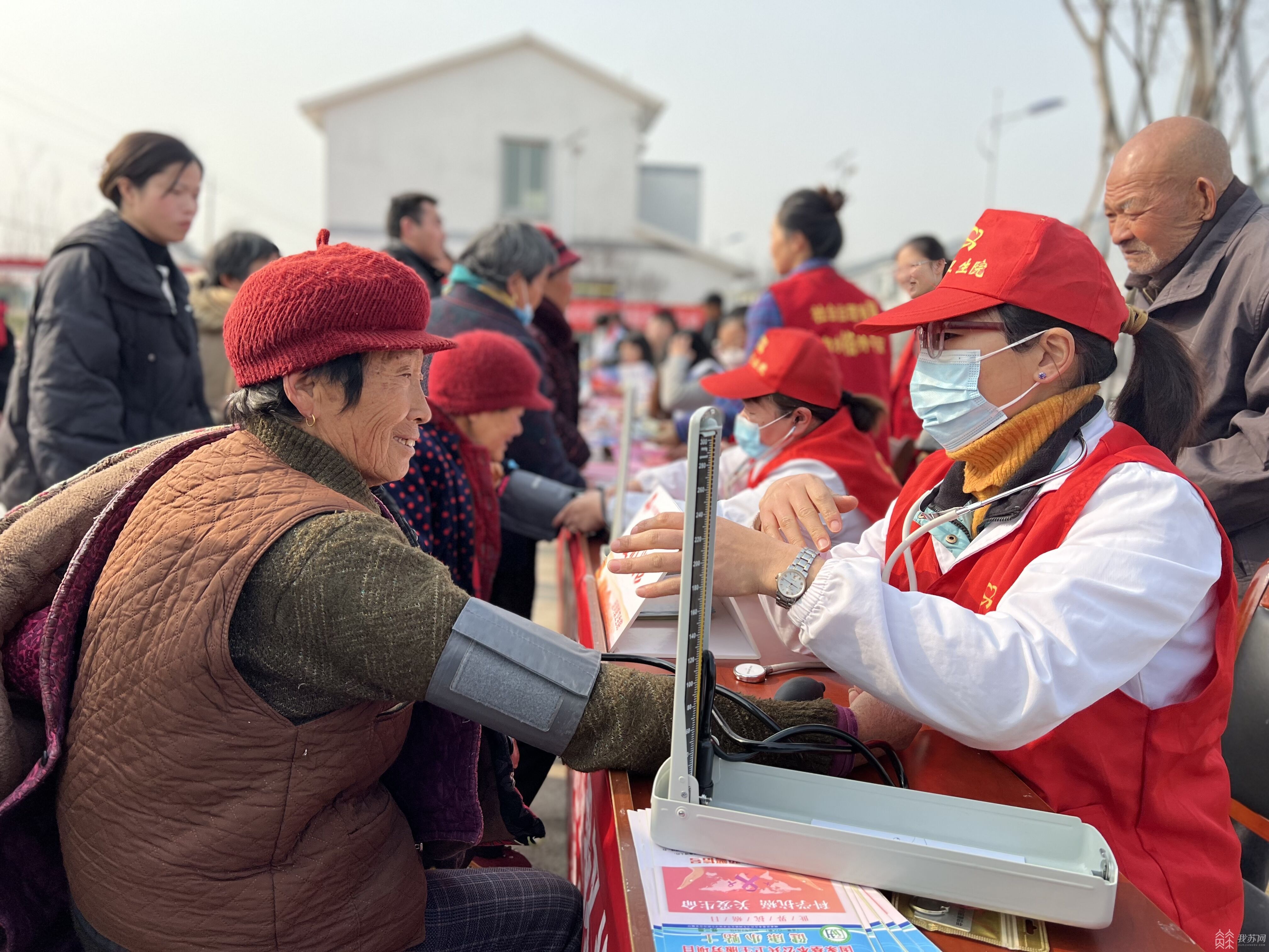 在运河镇正茂村红色文化广场上,春日阳光温暖了整个广场,大屏幕上播放着电影《雷锋》,吸引许多村民前来观看。镇村志愿者们忙着为群众测量血压,义务理发,解答有关退役军人优待、全民阅读等相关咨询,还走上大街小巷,向群众发放宣传单,普及反诈防骗相关知识。