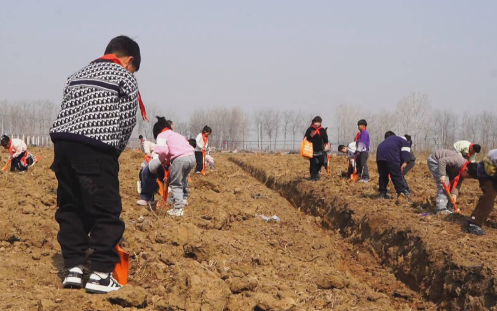 一大早,东海县白塔埠镇传承吕祥璧精神志愿服务队就来到宾果农场,忙着栽种树苗。同时,一百多名小志愿者也来到农场参与植树活动。他们在老师的带领下,亲手种下果树苗。
