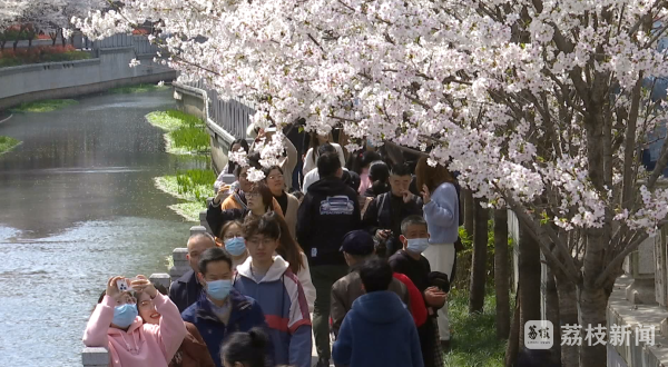 在距离赏樱胜地鸡鸣寺路不到一公里的太平北路珍珠河畔,两岸几百米长的樱花满树烂漫,吸引了众多市民和游客前来踏青赏花,人们徜徉其中,打卡拍照,感受春日美好。为了保证市民游客可以有序赏樱,南京多所高校专门组织了学生志愿者驻点在赏樱打卡点附近,加强疏导、维持秩序,尽最大努力为游客提供最佳的赏春体验。