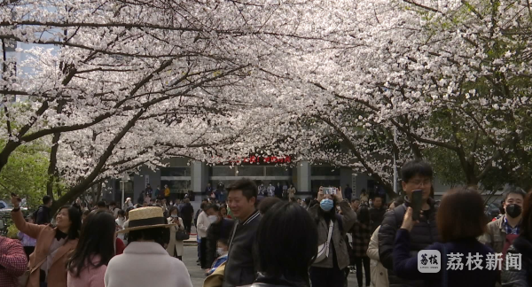 在南京林业大学校园开放的首个周末,游客和校友络绎不绝。樱花大道上,娇樱压枝灿若云霞,几分妩媚浑然天成。记者了解到,南京林业大学的樱花品种有20多个,其中野生种有11个,这两天樱花呈现出了最好的状态。南京市民戴女士说,之前看到学校官网发布说开放樱花观赏,我们就慕名而来,刚刚有一阵风,刚刚好樱花随着风落下,好美,感觉像樱花雨一样,特别美。