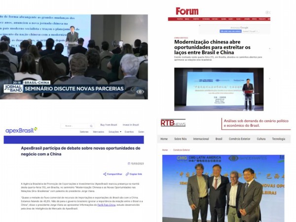 巴西旗手传媒集团、纪录电视台、《圣保罗州报》《伯南布哥日报》《论坛》杂志、Poder360、“广开言论”时评网、RTB新闻网等多家巴西主流媒体对研讨会进行了直播或报道。