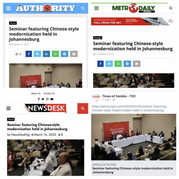 南非独立传媒、南非《外交圈报》、卢旺达非中评论网、赞比亚5FM电台、《赞比亚时报》、赞比亚国家通讯社、尼日利亚《权威报》、尼日利亚《领航报》、尼日利亚《都市在线》、尼日利亚《新闻时报》、加纳《投资时报》等多家非洲主流媒体对活动进行直播或报道,覆盖人口超过3亿。