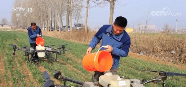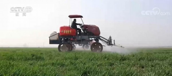 在枣庄市峄城区陈埠村的大田里,记者看到,3台自主植保机和三架无人植保机正同时作业,为小麦喷洒农药和液态氮肥。1台自主植保机每天至少能作业300亩,1架无人机每天则能达到500亩,1天就能完成整个村的土地喷灌。