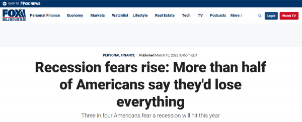 美国福克斯新闻网刊文指出,在高通胀的情况下,许多美国人担心该国今年将陷入衰退。根据Real Estate Witch的一项调查:69%的美国人认为该国正处于衰退之中,55%的人表示他们会在经济衰退中失去一切。