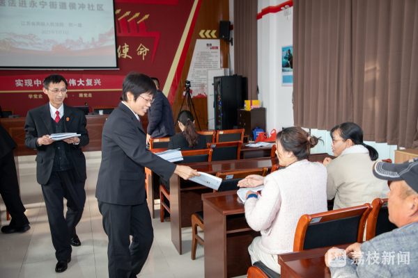近日,省法院民一庭的法官们走进南京市浦口区永宁街道侯冲社区开展“送法进社区”法治宣传活动,送法到群众身边,为群众普及法律知识,解答法律问题,以实际行动为群众办实事。