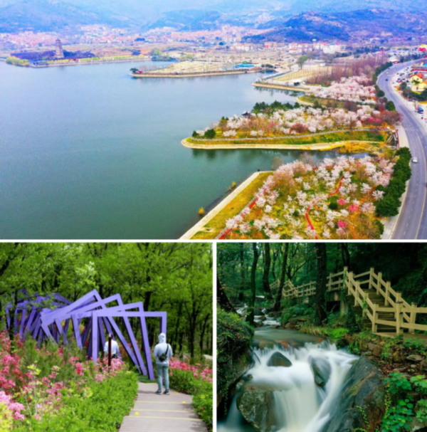 春日的花果山景区游人如织。花果山有一条森林游步道,整个游步道全长8千米,起点在大圣湖南岸,终点是玉女峰。沿途景观资源丰富,樱花园、梅谷、楸树林、千年银杏群、紫薇园等。游客在此漫步,不仅可观赏沿途美景,更可品味西游文化。