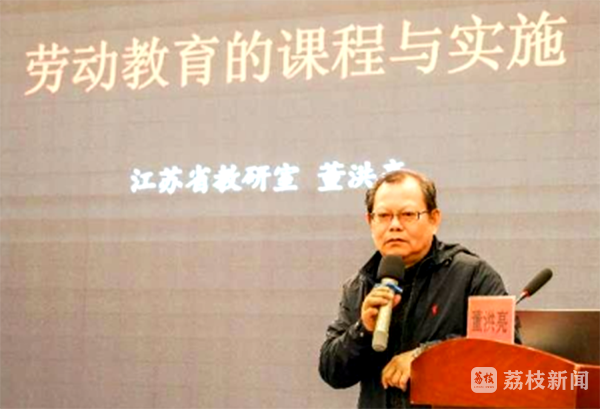 会议特邀江苏省教研室主任董洪亮作了《劳动教育的课程与实施》讲座培训,他从对劳动教育课程的认识、国内外的现状及今后劳动教育如何实施等几个方面开展讲座,为泰州市中小学各校探索劳动教育建设打开了新思路。