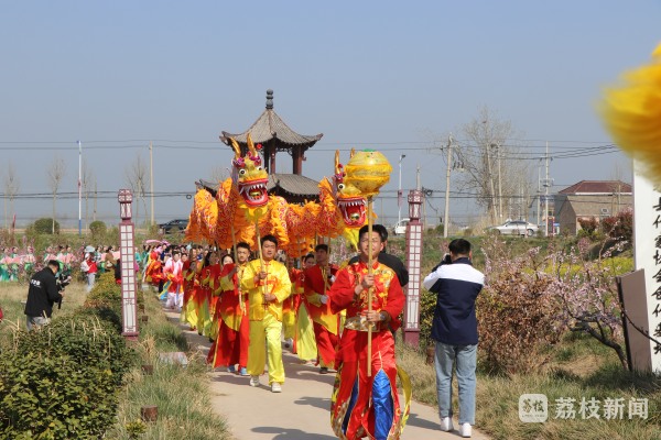 4月2日,盐城响水县大有镇十里桃园热闹非凡,“桃花十里 我在等你”2023年桃花文化月系列活动在这里掀起了春日热潮。漫山遍野的桃花次第绽放,舞狮、旗袍秀、文艺路演等更是赢得现场观众阵阵掌声。