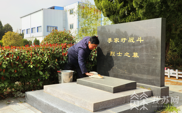 今年是江苏省滨海县著名的八滩王桥战斗胜利80周年。清明节即将来临,八滩烈士陵园,一排排墓碑被阳光拉长了影子。69岁的郇达富老人走走停停,他一会儿拎着水桶、拿出抹布轻轻擦拭烈士墓碑,一会儿又俯下身子捡拾落叶、垃圾,这样的动作已重复了33年。