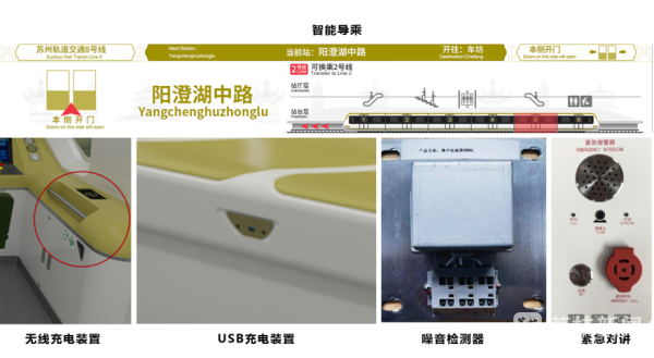 配置无级恒照度智能LED照明系统、智能空调送风系统、智能可视对讲装置以及智能导乘动态地图,全面提升乘客乘坐体验。在座椅、司机室靠扶处设置手机充电装置,可为乘客提供有线及无线两种模式充电服务。列车配置噪声检测装置,可根据客室背景声自动调节广播音量。