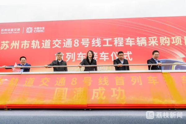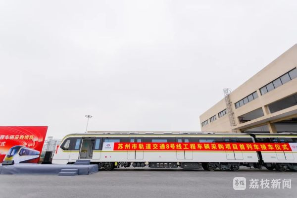 2023年4月6日上午,苏州轨道交通8号线工程车辆采购项目首列车接车仪式在苏州举行,苏州轨道交通集团党委书记、董事长金铭,副书记、副总经理王占生,中车南京浦镇车辆有限公司党委书记、董事长李定南等出席接车仪式。