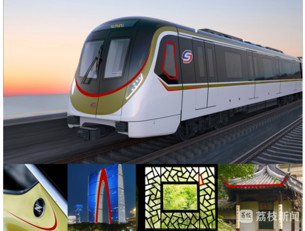 列车采用“橄榄绿”为主色调,车身流线色带恰似水系婉转,彰显着苏州崇文、融和的宏大气度。车头外观设计灵感源于苏州名片“东方之门”,提取现代建筑极简线条的轮廓勾勒,使车头造型简约且极具现代感。侧窗设计灵感则源于江南名园沧浪亭“闻妙香室”,窗区不规则的网格造型既融入了姑苏古典精巧的历史元素,更体现了苏州厚重的历史感。车灯造型契合了苏州园林四角亭古朴凝炼的独特风格,凸显出城市的底蕴和魅力。