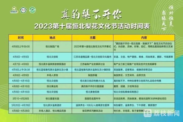 据了解,本届文化节以“真的梨不开你”为主题,恒北村精心烹制了颇具特色的文化大餐,将举办江苏省梨产业发展研讨会、江苏非遗特展——恒北文创街文化集市、恒北蓝城春风原乡温泉生活小镇体验、本场人酒店和恒北精品民宿酬宾体验以及恒北星星乐园首届恐龙嘉年华等精彩活动。