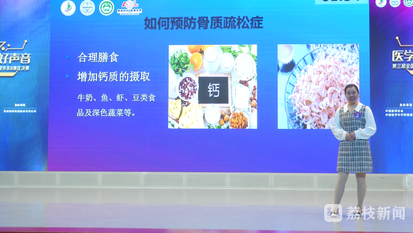 歌唱、快板、情景剧……借助这些生动的表现手段,20名来自华东地区三级以上医疗机构的青年医务工作者,将日常生活中的疾病预防、慢病管理、药品使用等内容,创编成一个个小节目,呈现在舞台上。来自淮安市淮安医院内分泌科的朱平医师,用表演"骨的告白",向大家讲述了骨质疏松发生的前因后果。“其实我们的骨骼每天都有新的骨组织在形成,就像是在盖房子,每天也有旧的骨组织在吸收,就像在拆房子,当房子拆得快、盖得慢,骨质疏松就出现了。”