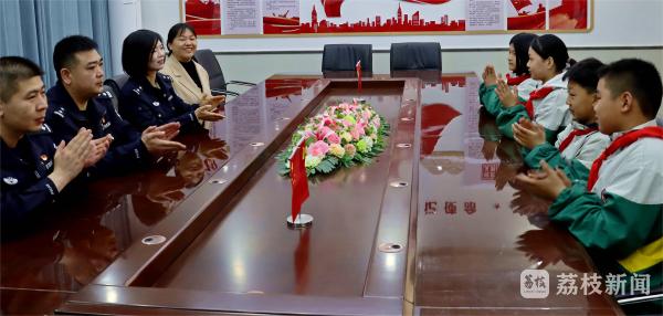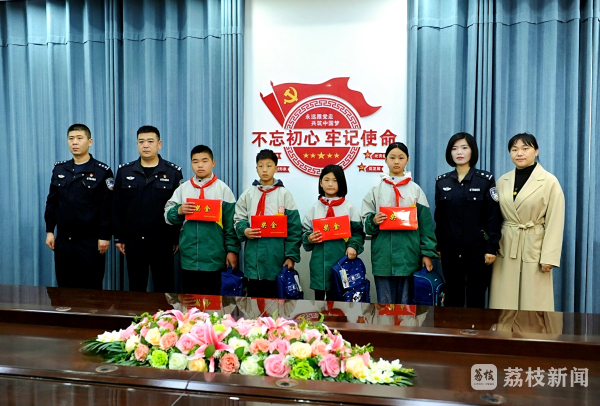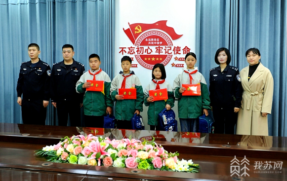 4月12日,连云港市灌云县见义勇为基金会、灌云县公安局南岗派出所工作人员带着慰问金和学习用品,来到该县南岗镇陡沟中心小学看望慰问前段时间冷静施救八旬老人的4名小学生。