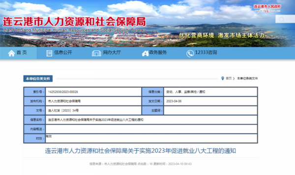 组织各类招聘500场次、新建就业服务站10个、帮扶困难群体就业1500人、发布高校毕业生需求岗位3万个……近日,连云港市人社局出台《关于实施2023年促进就业八大工程的通知》(以下简称《通知》)。