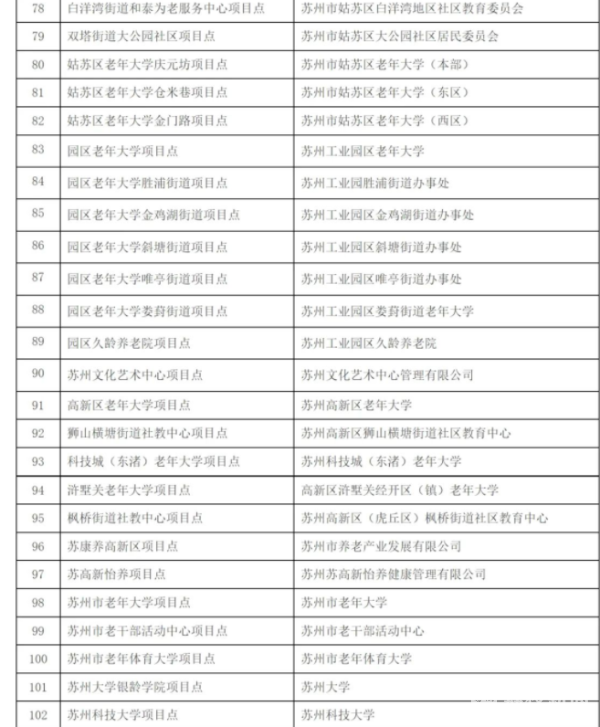 老年人不仅要老有所养,还得要老有所学。作为2023年的民生实事项目,日前,苏州市第一批“家门口的老年大学”项目名单公示,苏州共有102个项目点上榜。