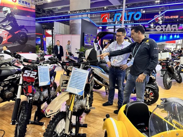 在今天开幕的第一期展会中,金城摩托品牌展位位于B区13.1,整体风格突出青春、简约、个性。开展首日客户洽谈活跃,已有泰国,委内瑞拉,多米尼加,哥伦比亚等多国客户进场咨询。今年金城以JC110-Q、JC110-28A、JC70B-9为代表的MINI系列车型以及枭250跑车为主打产品,聚焦年轻群体的消费需求,得到了多批客商的青睐。金城集团还将首次在广交会上进军食品展区,带来的调味料等主打产品将亮相第三期展会,争取开拓非洲市场。