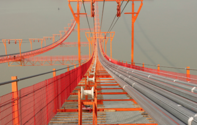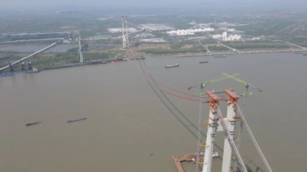 施工中所用缆载吊机采用缆下预拼、整体吊装的工艺,可以在5吊内将缆载吊机的主要承重构件吊装至主缆上并完成组拼,预计将在今年5月完成,然后进行进行试运行、试行走、试吊等一系列工作。