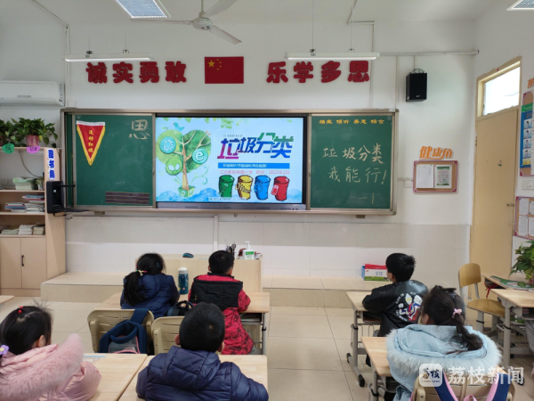 学校还开展了垃圾分类主题学习,让文明教育深入课堂。