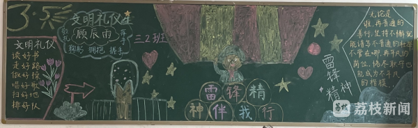 每个班级精心设计黑板报,认真学习文明礼仪常规,及时评比出每天的文明礼仪之星,人人争做“六好”学生。