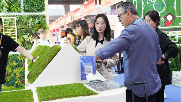 17日下午,记者在江苏共创人造草坪股份有限公司展区看到,这里外商“浓度”颇高,他们有的仔细查看展品,有的与工作人员热络交流。“这几天,到访客户还是挺多的,客流已基本恢复至疫情前水平,其中意向单约占五分之一。”公司亚洲部门经理瞿金芬介绍,共创草坪是国家认定的“专精特新”小巨人企业,产品市场占有率达18%,全球第一。这次来到广州,除了带来王牌产品人造草坪,还重点展示了近年来开发的新产品——墙上花园系列,这也是该系列首次在广交会亮相。
