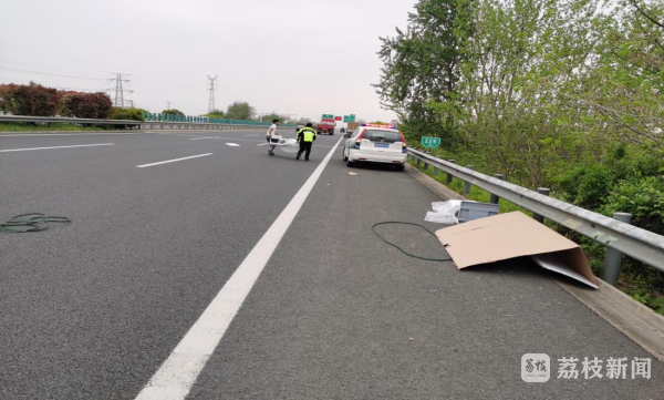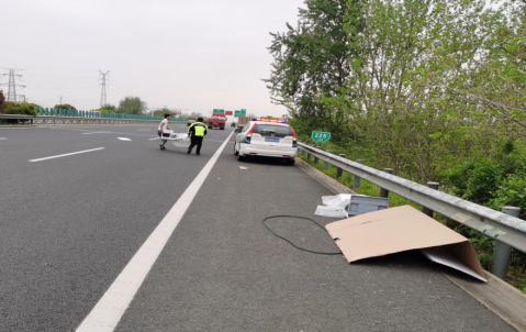 4月18日,江苏省交通综合执法局京沪支队第四大队执法人员及时处置一起货物掉落高速公路路面险情,帮车主挽回了十几万元经济损失,赢得车主连连点赞。
