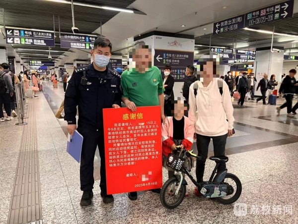 “我对派出所热心为民排忧解难的精神表示万分感谢!”4月18日下午,聋哑市民张先生(化姓)带着妻子和女儿走进了地铁南京南站警务工作服务站,向民警递上了一封火红的放大版感谢信。原来,他们是为了感谢南京地铁公安帮他们找回走散的女儿。