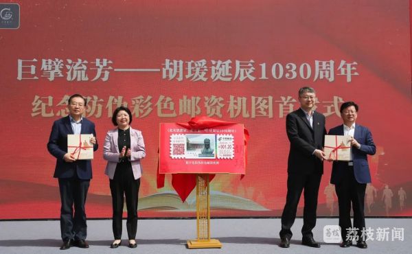 活动现场举行了巨擘流芳——胡瑗诞辰1030周年纪念防伪彩色邮资机图首发式,并向市教育局、安定书院赠送邮册。