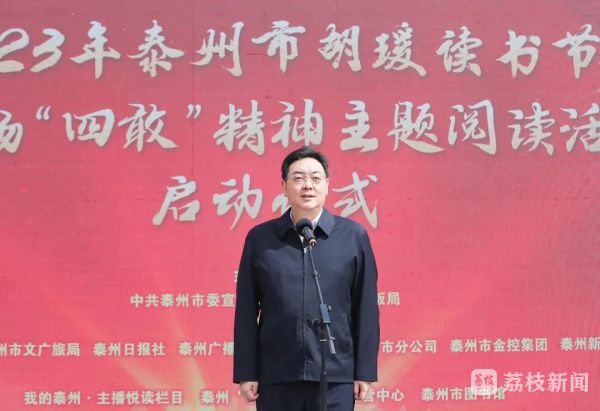 在第28个“世界读书日”来临之际,泰州市20日在金融中心泰福里广场隆重举行2023年泰州市“胡瑗读书节”暨弘扬“四敢”精神主题阅读活动启动仪式,认真学习贯彻党的二十大精神,深入推进全民阅读活动,引导全市上下把读书学习当成一种生活态度、一种工作责任、一种精神追求,为“干部敢为、地方敢闯、企业敢干、群众敢首创”提供智力支撑、注入精神力量。