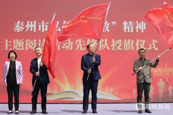 活动现场还宣读了《关于开展泰州市弘扬“四敢”精神主题阅读活动的倡议书》,并举行泰州市弘扬“四敢”精神主题阅读活动先锋队授旗仪式。