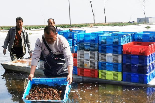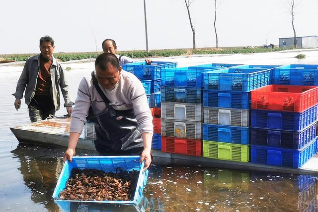 目前,正值虾农春耕和投苗时节,江苏省淮安市盱眙县的虾稻田里一派繁忙。
