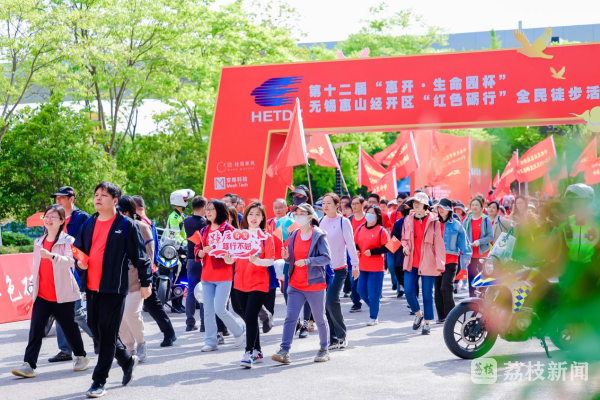 4月22日,第十二届“惠开·生命园杯”无锡惠山经开区“红色砺行”全民徒步在活力四射的舞蹈和音乐中拉开帷幕,来自全市的3000余名徒步爱好者共同参加此次活动,充分感受惠山新城的宜人景致与发展变迁。
