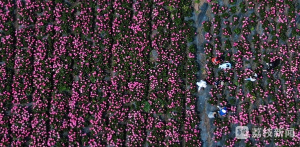 走进天王镇的金山东篱园内,清新的花香扑面而来,一片片红粉相间的花海映入眼帘,美如云霞,让人宛若画中游。从空中俯瞰,犹如一块巨大的花毯在绿野蔓延。人们三五成群点缀其间,赏花拍照,尽情陶醉在花的海洋中,享受着春日好时光。