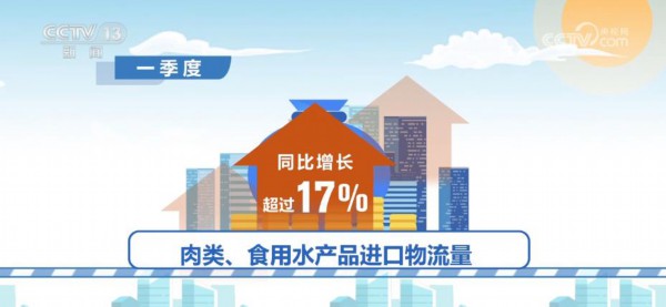 具体来看,重点进口品类中,一季度,原油、铁矿石和煤炭等大宗能源产品进口物流总额占比合计近两成,同比增长9.1%。消费品进口物流总额增长6.9%。其中,肉类、食用水产品进口物流量同比增长超过17%。