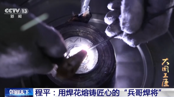 因为位置受限,程平只能半跪着,焊接过程中,舱体随着风速的变化会晃动,幅度忽大忽小,程平必须屏住呼吸,紧紧靠住机舱壁,在身体晃动的同时,保证焊枪在宽度不到2厘米的U形槽里小幅摆动。每焊接30毫米,立刻进行一次锤击。这样反复地焊接、锤击,6个小时后,焊接终于顺利完成。100多米高空中,配件牢牢地和卡钳底座长在了一起。