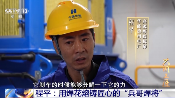 华能德州电厂高级焊接技师 程平:这十来年,新能源迎来了大的发展,每次看到经过我的手,一座座风机更安全地迎风旋转,能够参与新能源的建设,为国家出一份力,见证它的发展进程,我感到自己非常骄傲也很自豪。
