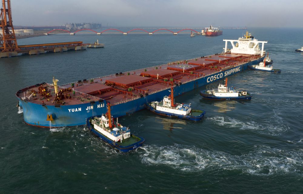 船舶停靠在国能黄骅港四期码头进行装船作业(2023年3月9日摄)。新华社记者 骆学峰 摄