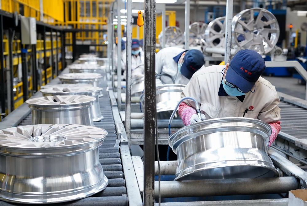 工人在秦皇岛经济技术开发区一家车轮企业的生产车间工作(2023年2月12日摄)。新华社记者 杨世尧 摄