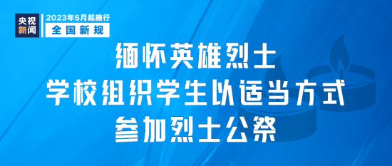 新修订的《烈士公祭办法》自5月1日起施行。其中强调发挥公祭活动对青少年的教育作用,要求各级各类学校组织学生以适当方式参加烈士公祭,加强爱国主义、集体主义、社会主义教育。