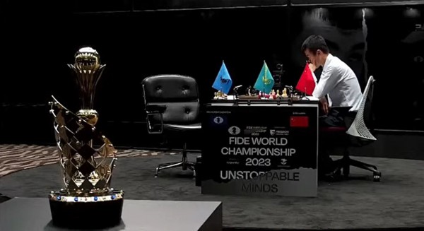 丁立人在2023年国际棋联世界冠军赛中。