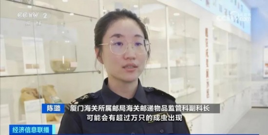 厦门海关所属邮局海关邮递物品监管科副科长 陈璐:我们这次查获的甲虫数量比较多,而且多数是雌雄成对出现的,它的逃逸和繁殖能力比较强,经过三代的繁殖可能会有超过万只的成虫出现。一旦传入我国境内,将会对我国生态安全还有生物安全造成潜在的威胁。
