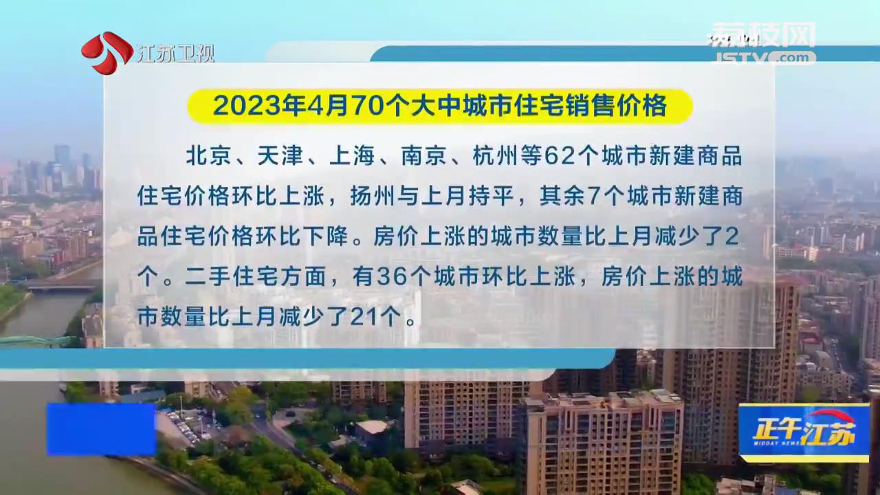 国家统计局今天发布2023年4月70个大中城市住宅销售价格报告,江苏省列入监控的南京、无锡、徐州、扬州4市新建商品住宅3涨1持平,南京新房价格上涨、二手房下降。