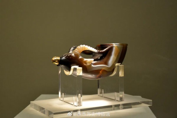 杯的造型,与起源于古希腊的酒具“来通”相似,“来通”曾广泛流行于中亚、西亚地区。小小玛瑙杯目睹了唐代丝路繁华,也倾倒出了唐人开放包容的胸襟气魄。