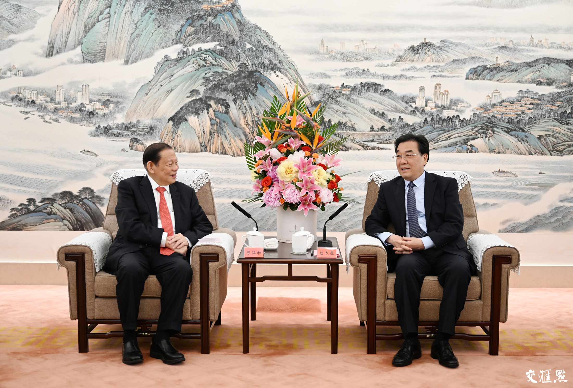 信长星对陈江和一行来江苏深化合作表示欢迎,对金鹰集团长期以来为江苏发展作出的贡献表示感谢。他说,在高质量发展上继续走在前列,是新征程上江苏工作的总目标,也为各类企业在江苏投资兴业创造了新的广阔空间。希望金鹰集团继续深耕江苏,布局更多优质项目,在绿色低碳高质量发展上发挥示范引领作用。希望陈江和先生继续发挥侨领作用,带动更多侨资侨智参与江苏建设。我们将致力打造一流营商环境,在深化合作中实现更高水平互利共赢。