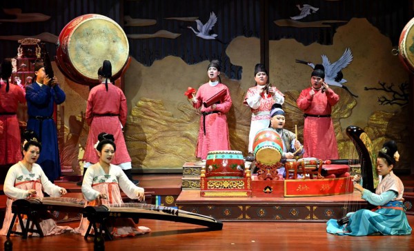 2023年1月24日,西安大唐芙蓉园内上演的舞台剧《鼓》。新华社记者 刘潇 摄